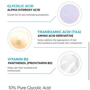 This lightweight glycolic acid serum, suitable for multiple skin tones, helps reduce the look of dark spots and discolorations and reveals brighter, more even looking skin. This serum combines concentrated 10% pure glycolic acid, tranexamic acid (TXA), lipo-hydroxy acid, and vitamin B5 for optimal effectiveness while also being suitable for sensitive skin.