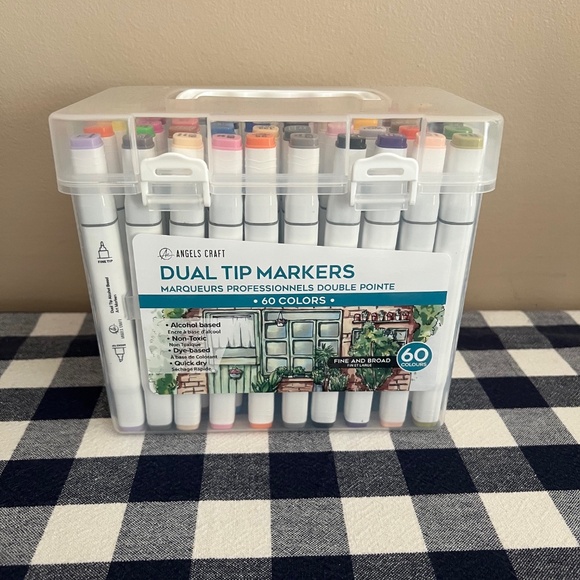 Brand new in the box. Made by Angels Craft. This is a set of 60 alcohol-based markers that are double-sided, one with a fine tip and the other with a broad tip. I have more craft items available, so be sure to check them out!