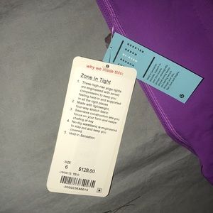 Brand new, never worn with tags zone in tight. These run a little smaller than the regular lulu tights as they have more compression.