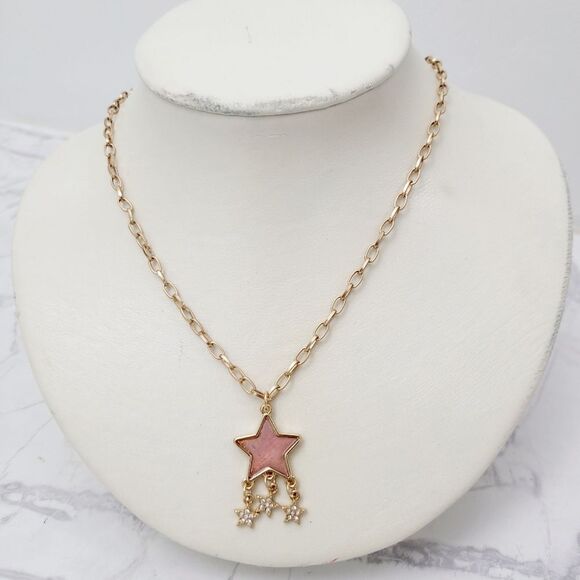 Brand New Gold Tone Pink Stars Necklace