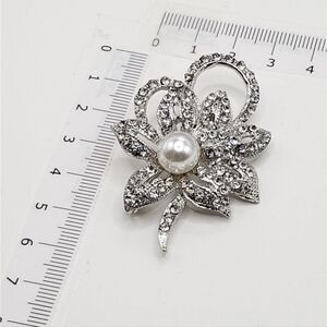 Brand New Pearl Rhinestone Silver Brooch Pin