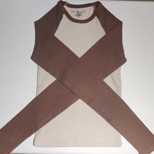 Note the zoom on the brown/ivory top's tag, 'cotone' is NOT a misspelling but Italian for cotton, because this top was originally bought internationally.