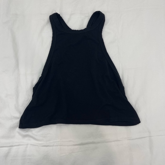Sleek black tank top. Ideal for layering or wearing alone. Simple and stylish.