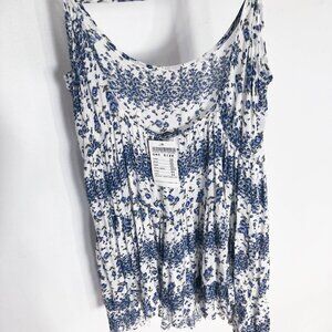 Brandy Melville Blue + White Rose Floral Jada Dress