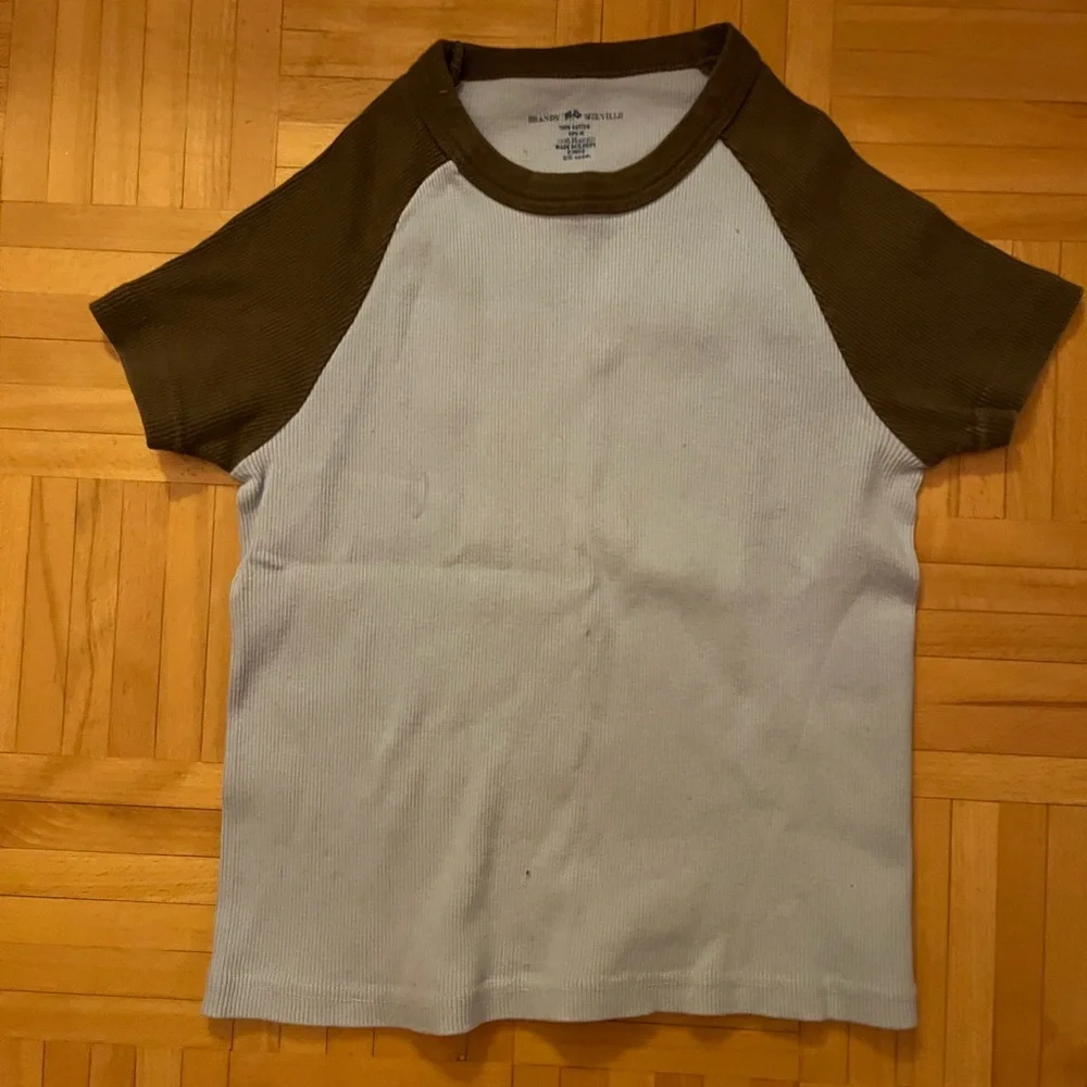 Brandy Melville Brown and Blue Raglan T-Shirt