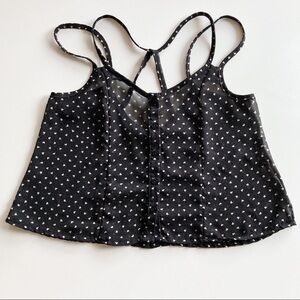 Brandy Melville Black & Tan Crossed Back Hearts Print Sheer Cami Tank Top