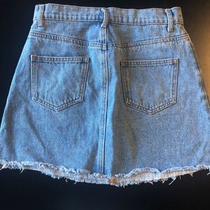 Super cute, short jean skirt, comfortable material, little frayed raw hem on the ends, perfect summertime denim.