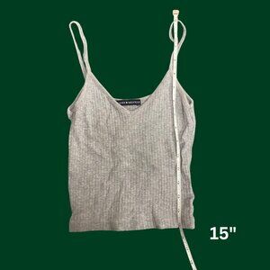 Brandy Melville Grey Ribbed V-Neck Cami Tank Top (OS, 100% Cotton, Made in Italy