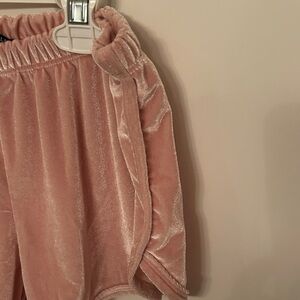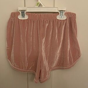 Soft pink velvet shorts. Elastic waistband. Comfortable fit.
