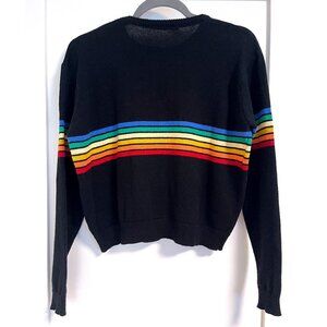 Brandy Melville Rainbow Retro Stripe Black Cotton Sweater