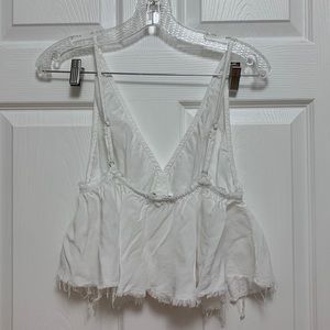 Brandy Melville Riley Tank. Flowy top with raw hem. Super cute and lightweight for summer! 9/10 condition - no visible stains or marks, only worn a couple times. Not sold anymore! One size but will fit about an xs-m. Straps are adjustable.