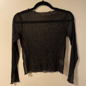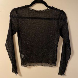 Brandy Melville Sheer Mesh Glitter Long Sleeve Top Black One Size