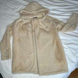 Brandy Melville Teddy Plush Beige Open Front Jacket Hooded One Size so soft