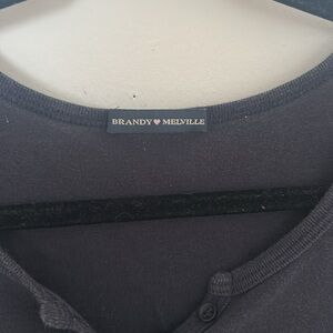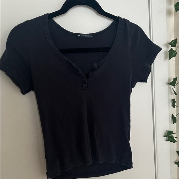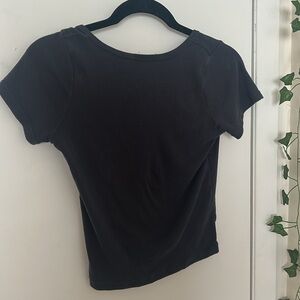 Chic black tee with button detail. Soft fabric. Perfect for casual wear.
