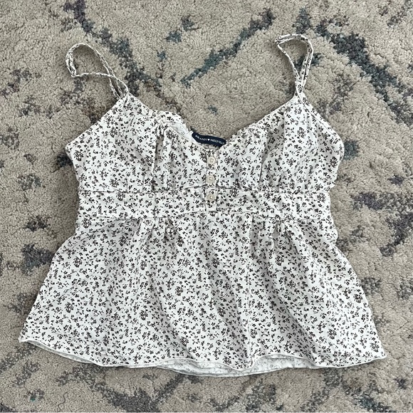 Brandy Melville Tiffany Babydoll Top in Brown and Cream