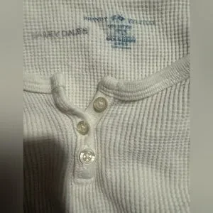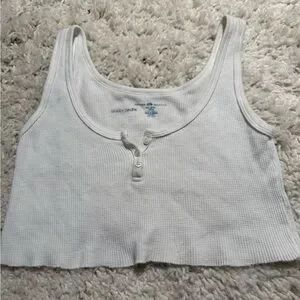 White brandy Melville crop top with buttons. Is a nice waffle fabric. Unfortunately is too small for me - would say it fits a xs-s best! The photos from the original listing are accurate as I have only worn it to try on.