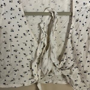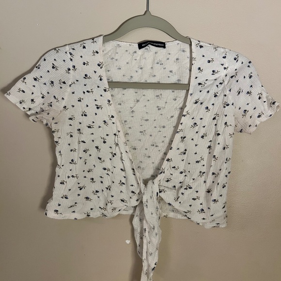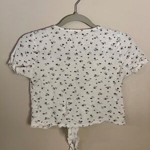 Brandy Melville white tie in the front top, with cute blue flowers!