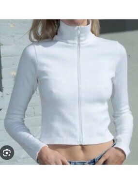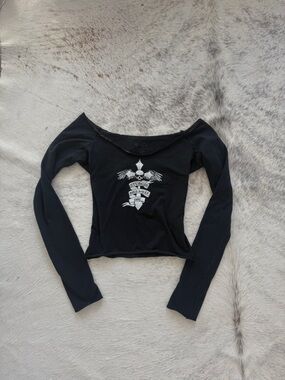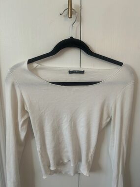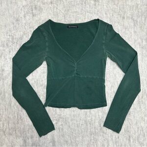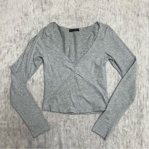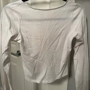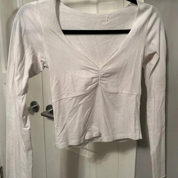 Brandy Melville white V-neck long-sleeve tee with ruched detailing down the centre. Previously had a minor tear on the back, now carefully stitched and in good condition.