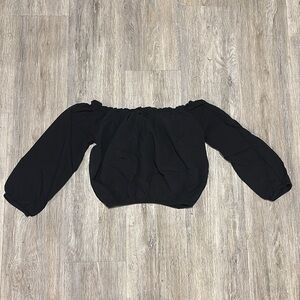 Elegant black off-shoulder top perfect for any occasion. Stylish and versatile, this top is a must-have in your wardrobe.