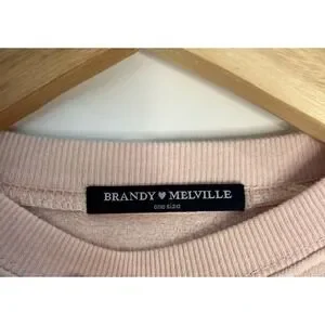 Classic crewneck sweatshirt from Brandy Melville comes in a soft, light pink hue and features a comfortable oversized fit. Crafted from a cozy cotton blend with a fleece-lined interior, it includes a traditional V-stitch detail at the neckline and ribbed trim at the collar, cuffs, and hem. This versatile basic is perfect for layering or lounging, offering a relaxed silhouette that pairs effortlessly with denim or leggings. Please note a small faint mark on the sleeve as shown in the photos.