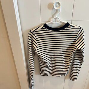 Brandy Melville Women's Navy and White Long Sleeve Shirt, thick material, good condition