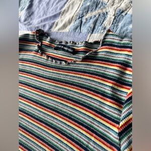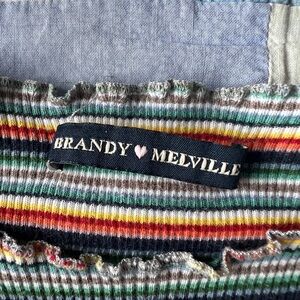 Brandy Melville Womens Striped Cute Girlie Baby Tee Multicoloured Ruffle Edges