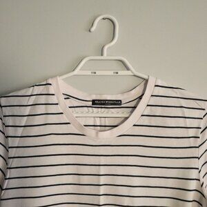Brandy Melville Women's White Striped Crewneck Stretch T-Shirt Top