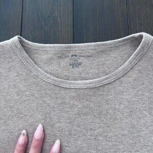 Brandy Melville long sleeve cotton top in a neutral beige shade. Made from soft, breathable cotton — lightweight yet perfect for layering on cooler autumn days. Slim, flattering fit with a timeless everyday look. Easy to pair with jeans, skirts, or layered under jackets for a chic fall outfit.