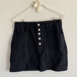 Brandy Melville black denim miniskirt. Has 6 functional buttons up the front, belt loops, front and back pockets. This skirt is a size medium, fits slightly larger than typical brandy skirt but would still fit a size small to medium. Worn once, great condition.