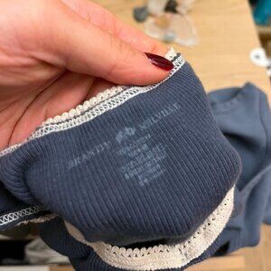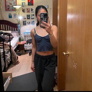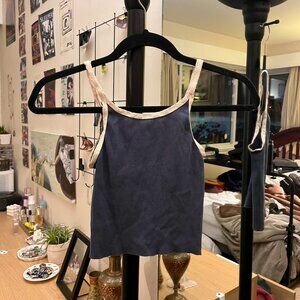 Cropped blue & white tank top, custom cinched at the front (can be removed with scissors)