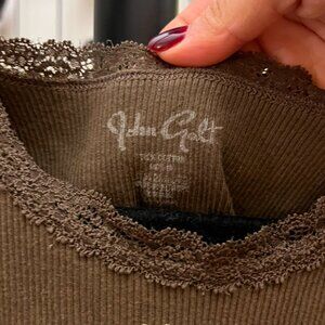 Brown lace graphic tank top, custom cropped (edges have frayed as shown in the last image)