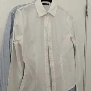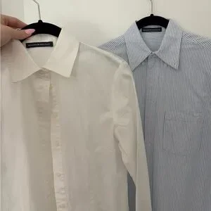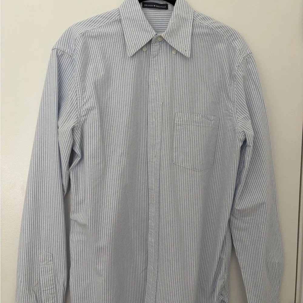 Includes both a white and blue pin strip button up blouse from Brandy Melville. Light weight and good for layering, only worn once. Selling both together for the price of one.