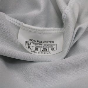 Up for sale is a vintage Barnsley FC by Red Flag. It is a 2002 away jersey with a silver base colour and black trim. The front of the jersey has the Bransley logo crested on with team sponsor Isoft's logo crested across the midsection. The back of the jersey has the number 50 screened on. What a great jersey do not miss out on it.