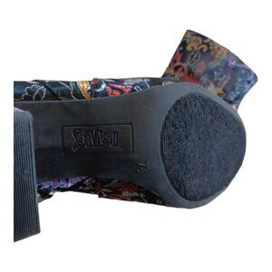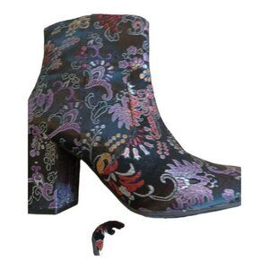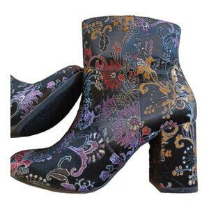 Almost new condition. Heels are approximately 3 in high. Gorgeous colorful brocated boots with black backgrounds.