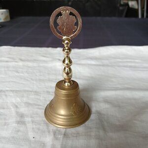 Brass dinner bell, with "Roma" in circle. Pre-owned, very good condition, check photos. 4.5" Tall.