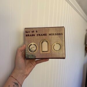 Vintage mint condition 1970's(?) mini mirrors set in a brass frame. Each mirror has a hook on the back for easy hanging. Brand new, never used, still in box and plastic. So cute on a gallery wall or on a small hallway.