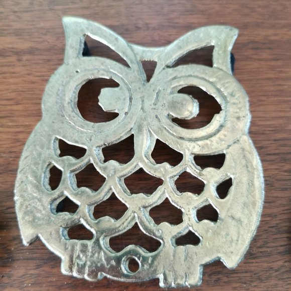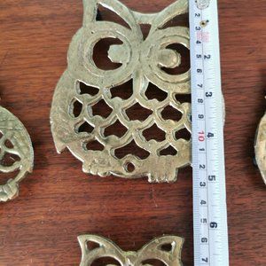 Brass Owls Trivets Set of 4, Vintage Cutout Brass Owls Trivets Coasters