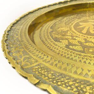 Brass Tray Wall Plate 18" Engraved Design “Fu” Blessings Hong Kong Vintage MCM