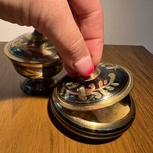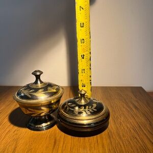 Brass and black jewelry, trinket dishes, make up holders vintage etched India