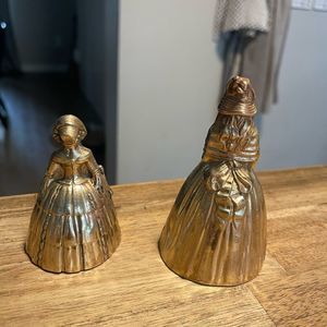 Brass lady vintage antique dinner bells large shawl small Victorian collectable