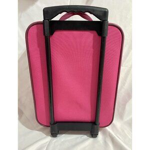 This listing is for a previously loved small rolling suit case. There is wear to the design on the front. The zipper works great and it is very clean inside. The wheels show signs of use. There are also some light marks and a dark gray dot on the back. Please see photos for details.