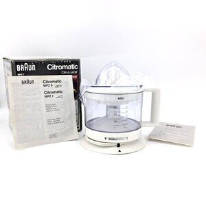 The Braun Citromatic Citrus Juicer, specifically the "Gourmet Edition" Model MPZ7 Type 4161, is a vintage electric juicer from the classic Braun line. Known for its simple, functional, and durable design, this model is a product of Braun's celebrated design history, which includes contributions from renowned designers like Dieter Rams.
