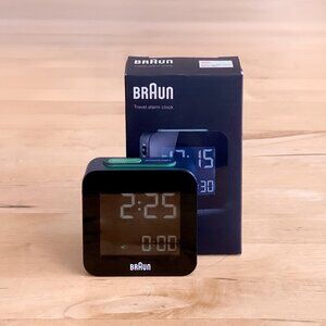 Braun Digital Travel Alarm Clock remains in very good condition. Complete with original box and instuction manual. Ready to use and enjoy.
