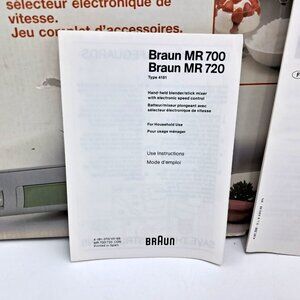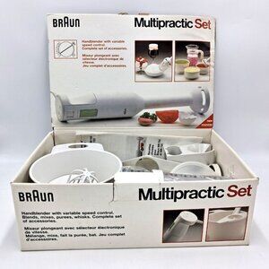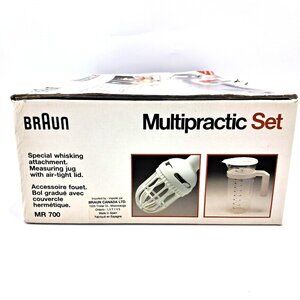 The Braun Multipractic Set MR700 (Type 4181) is a versatile, high-powered vintage or older model hand (immersion) blender system.