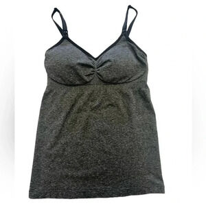 Bravado Basics Maternity/ nursing tank, slimming long black heathered with black removable, snap and adjustable straps, with removable padding.