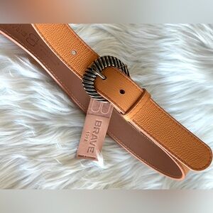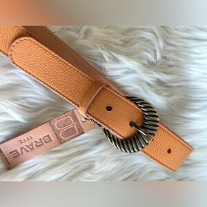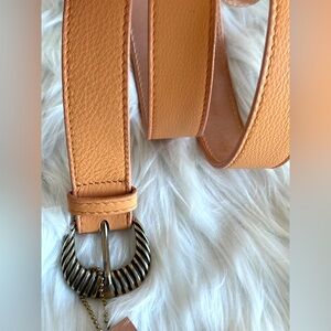 Camel - Pebble Leather Belt 1.2” wide with engraved Gold hardware.