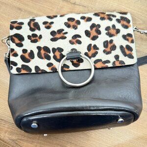 Brave Leather Virtue Bag Crossbody Calf Hair Leopard Print Western