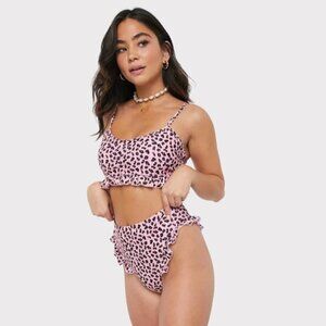 NWT Brave Soul pink leopard print frill detail cami bikini top and high waist bikini bottom
