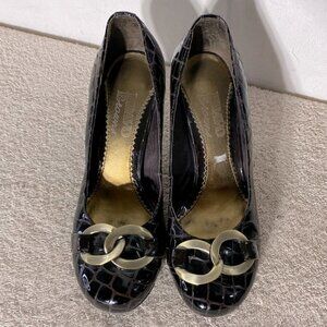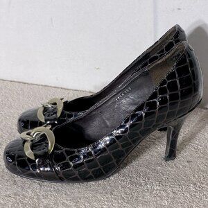 Bravo Browns Brown Lara Croc Embossed Patent Leather Heels W Brass Buckles 7.5