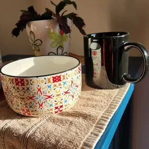 - 2 bowls with multi-color ornament design